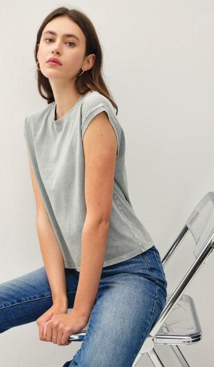 Basic Cropped Capped Sleeve Tee - Gray