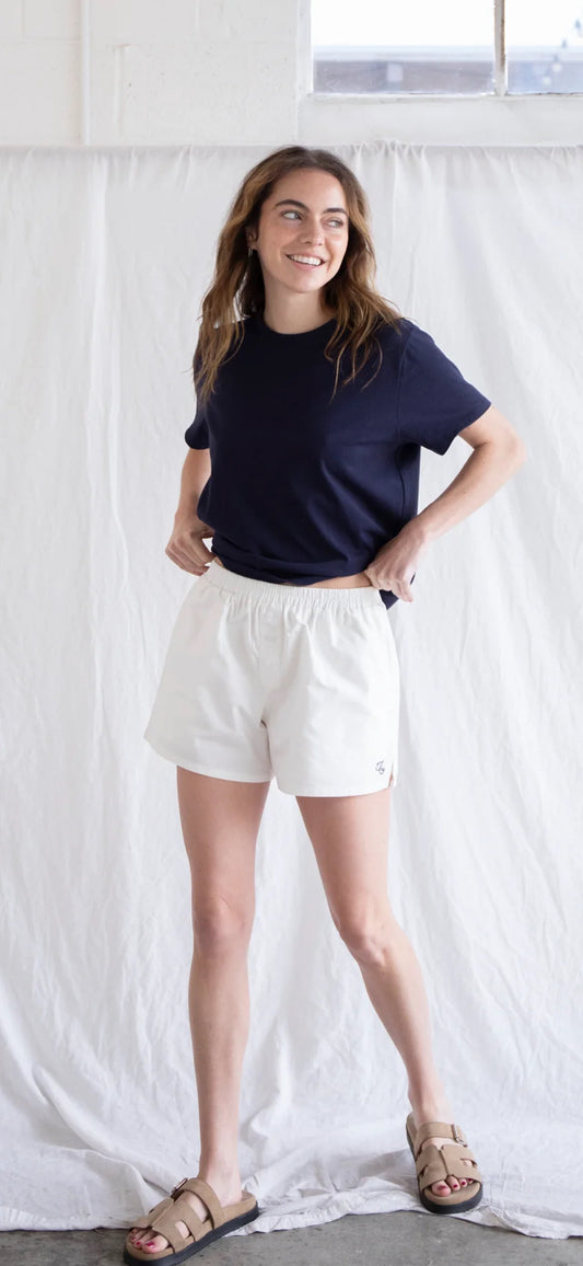 Bow Tied Short Sleeve Blouse + Short Set - Cream