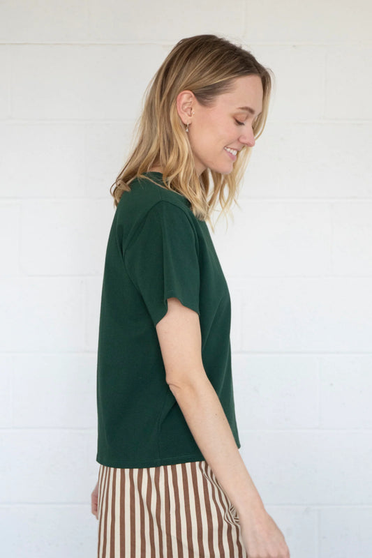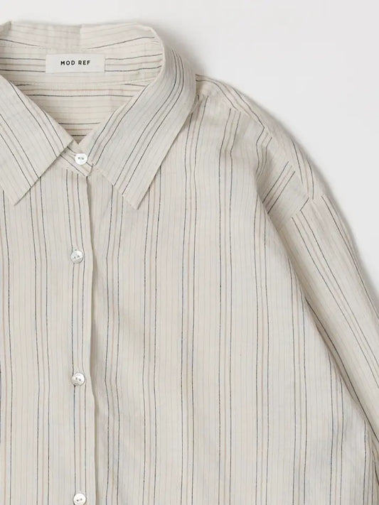 The Jill Top - Pinstripe Button-Down - Olive Grey