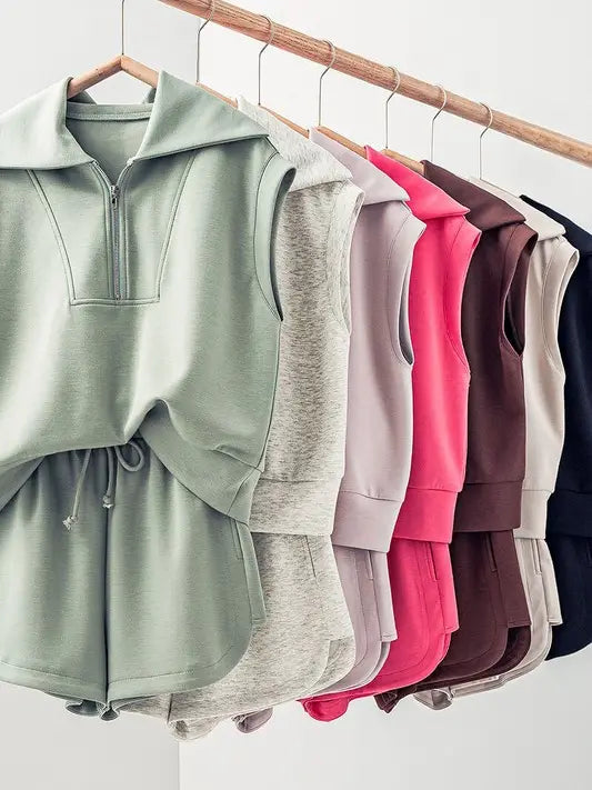 Triumph Set - Quarter Zip + Sweat Shorts - Sage