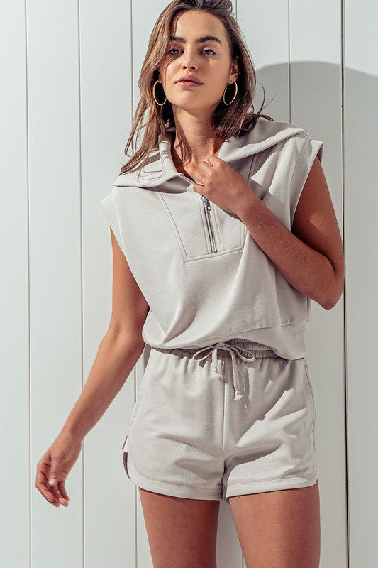Triumph Set - Quarter Zip + Sweat Shorts - Stone