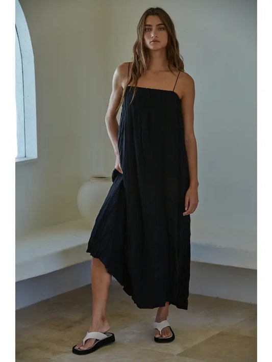 Tube Neck Spaghetti Strap Maxi Dress - Black