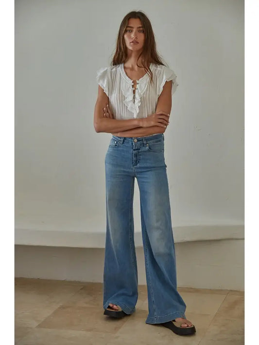 Woven Cotton Linen Button V-Neck Short Sleeve Blouse - Off White