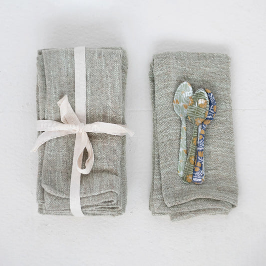 Woven Cotton + Linen Slub Napkins - Green - Set of 4