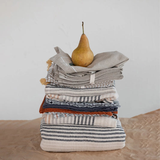 Woven Cotton & Linen Tea Towel with Fringe - Set of 2