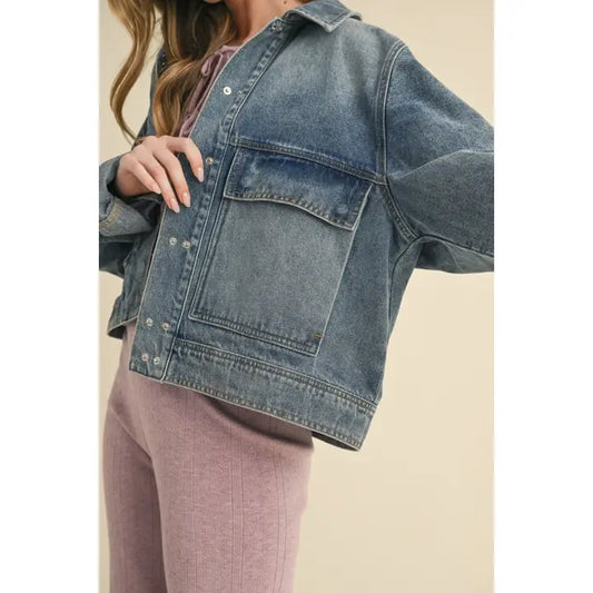 Cargo Pocket Wide Leg Denim Jeans - Light Denim