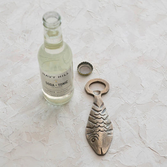Cast Metal Fish Bottle Opener - Antique Brass Finish