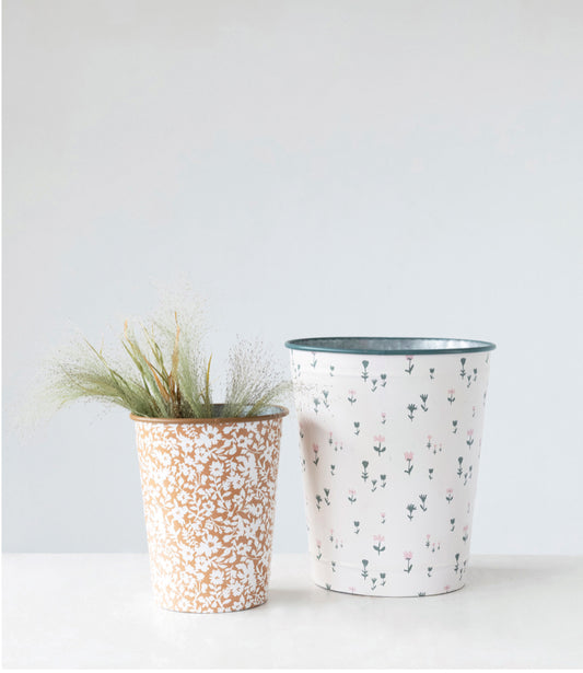 Decorative Metal Galvanized Tin - Floral - Set of two