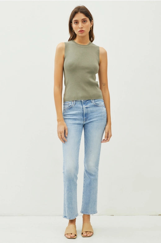 Knit Sweater Striped Sleeveless Tank Top - Navy