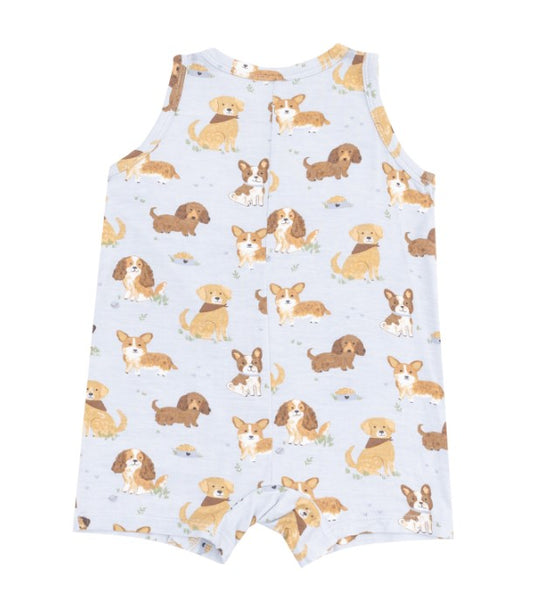Sleeveless Shortie Romper - Best Friend Dogs - Blue
