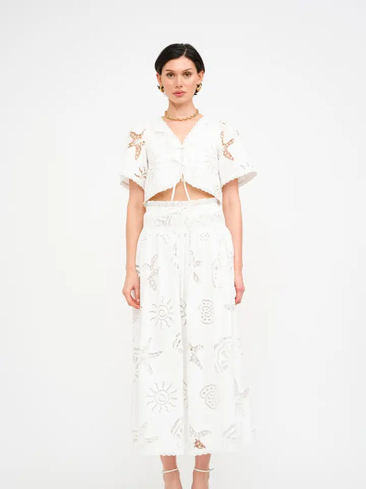 Feeling Lucky Embroidered Tee - Cream/Navy