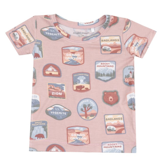 Short Sleeve Loungewear Set - National Park Patches - Pink
