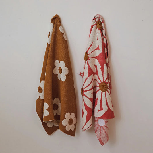 Cotton Knit Baby Blanket - Flowers