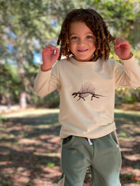 Me & Henry - Cherokee Raglan Printed Tee - Stone W Dino Skeleton