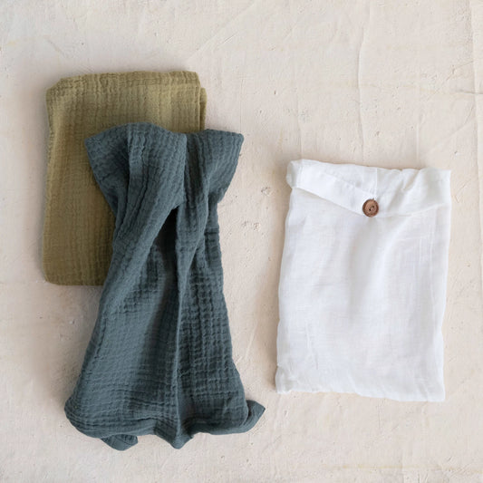 Cotton Double Cloth Tea Towels - Set of 2 - Chartreuse + Dusk Blue