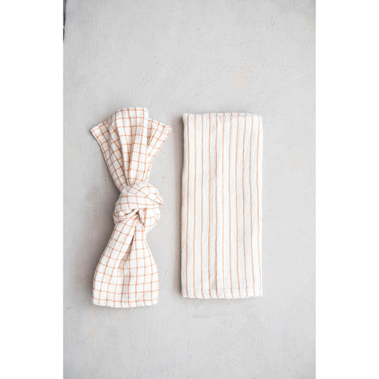 Cotton Double Cloth Tea Towel - Natural + Rust - Grid