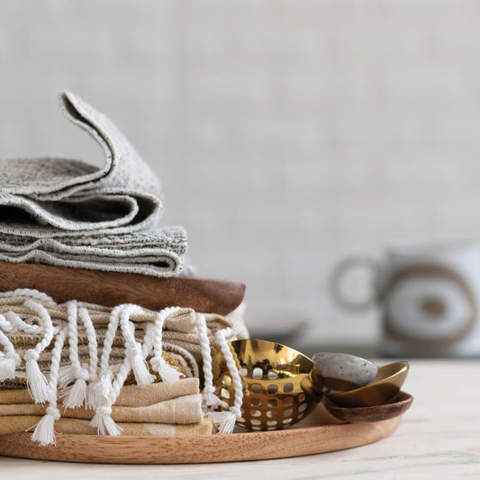 Square Woven Cotton Slub Dish Towels - Set of 3 - Mustard