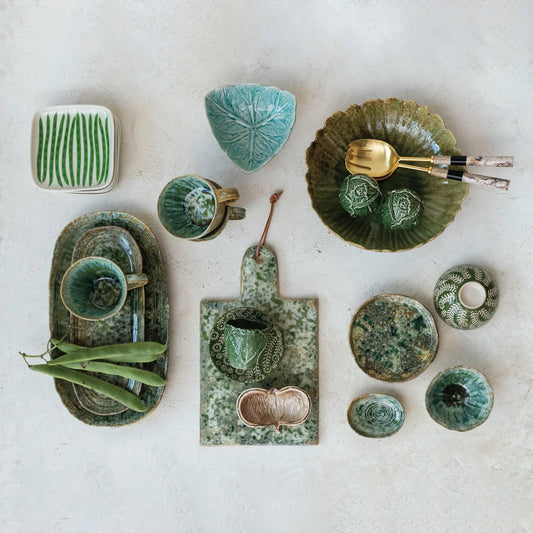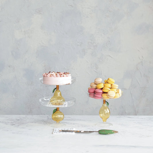 Glass Pedestal with Pear Shaped Base - Green & Amber