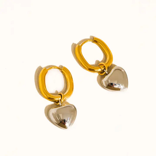 Noor 18K Non-Tarnish Two Tone Heart Earring