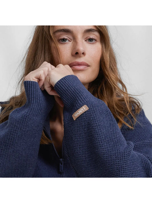 Lunya - Cozy Cotton Silk Collared Half Zip - Deep Blue Heather
