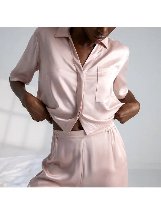 Lunya - Washable Silk High Rise Pant Set - Serene Pink