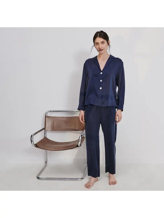 Lunya - Washable Silk Long Sleeve Pant Set - Deep Blue