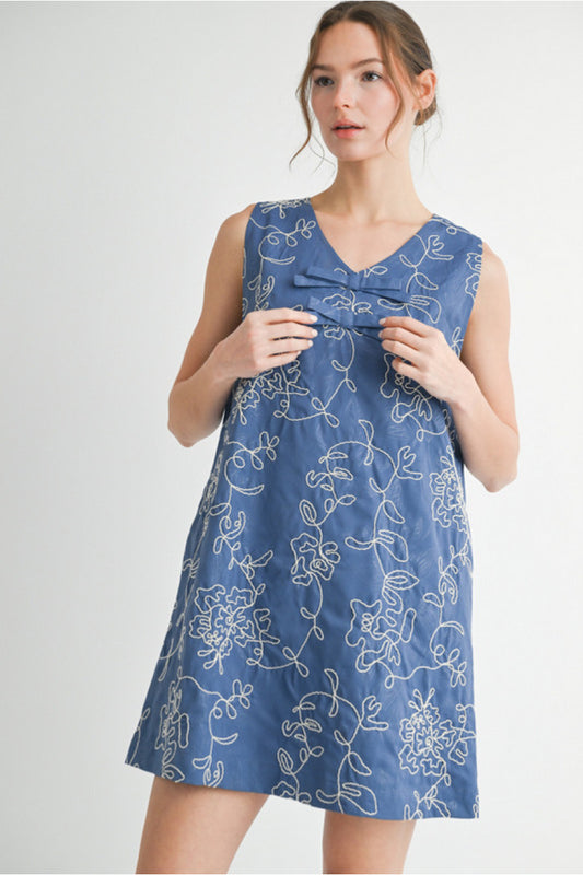 Floral Embroidered Dress - Blue
