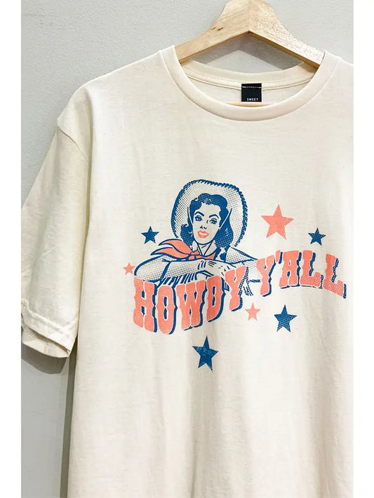 Howdy Vintage Cowgirl Graphic Tee - Natural