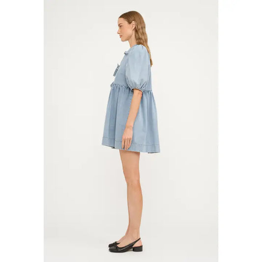 Denim Embroidered Mini Dress