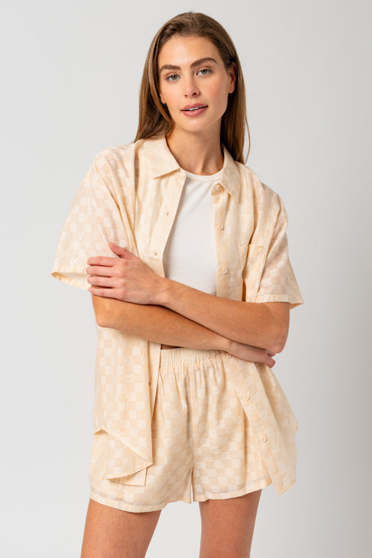 Oversized Checkered Short Set - Cream