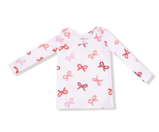 Long Sleeve Loungewear Set - Candy Cane Bows