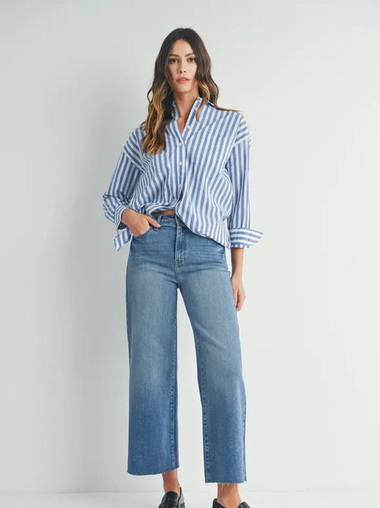 Petite Cuffed Slim Wide Denim Pant - Medium Denim