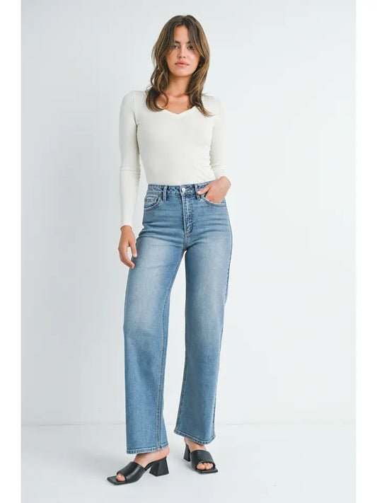 Scissor Cut Wide Leg Jeans - Medium Denim