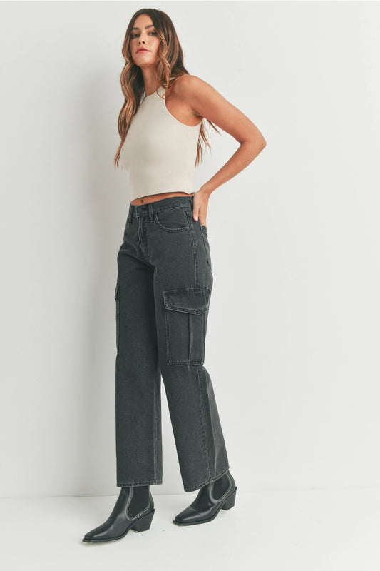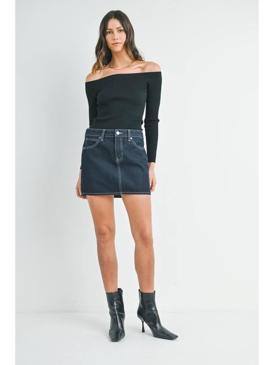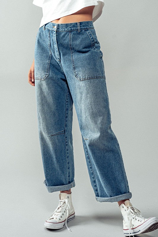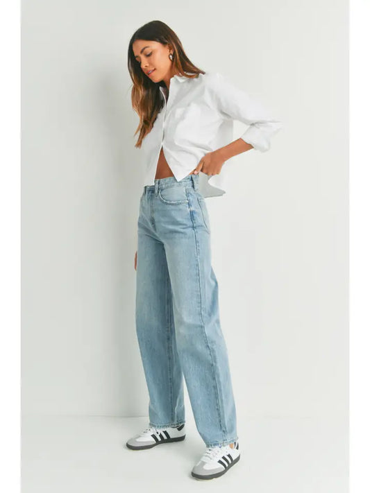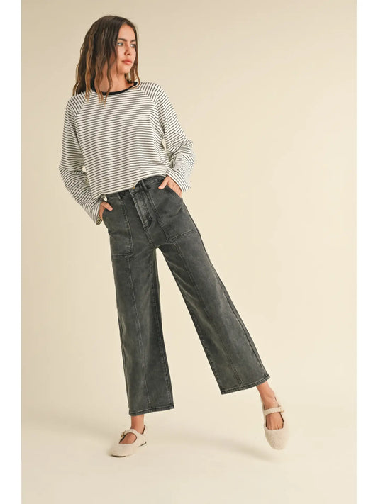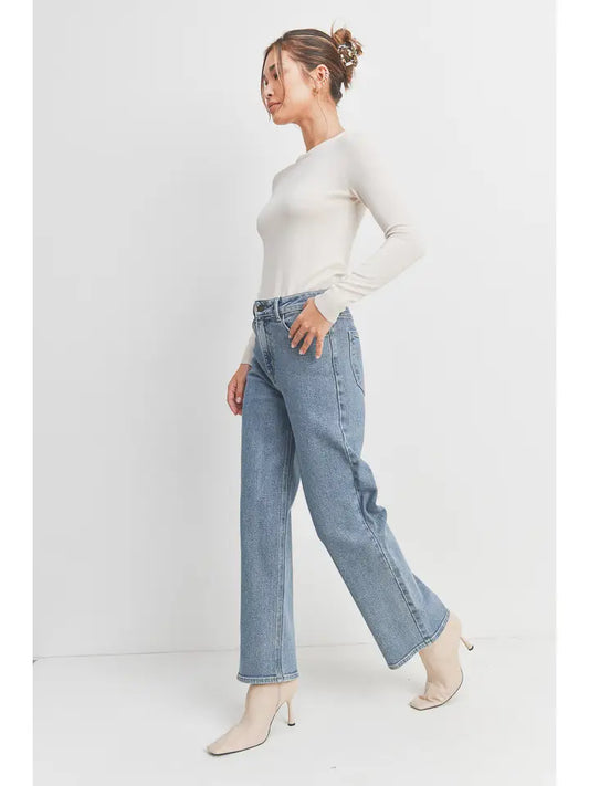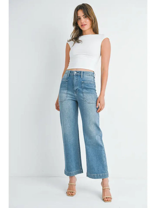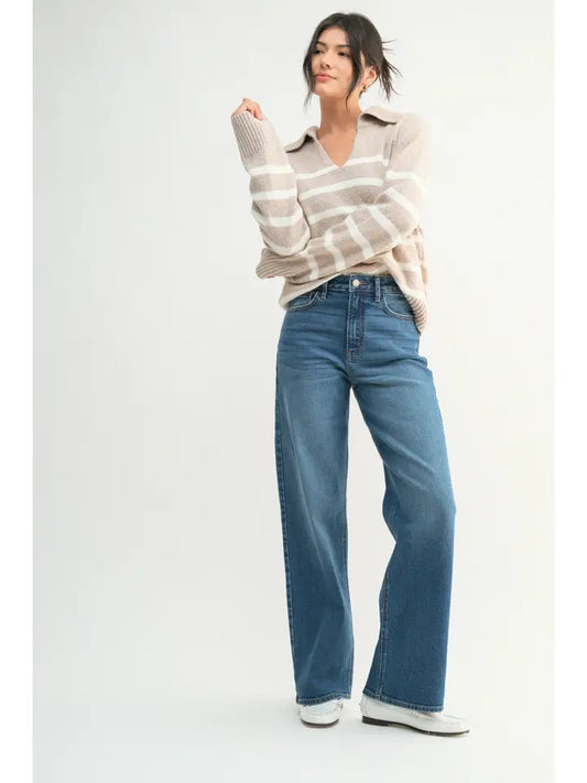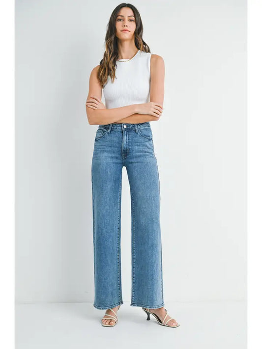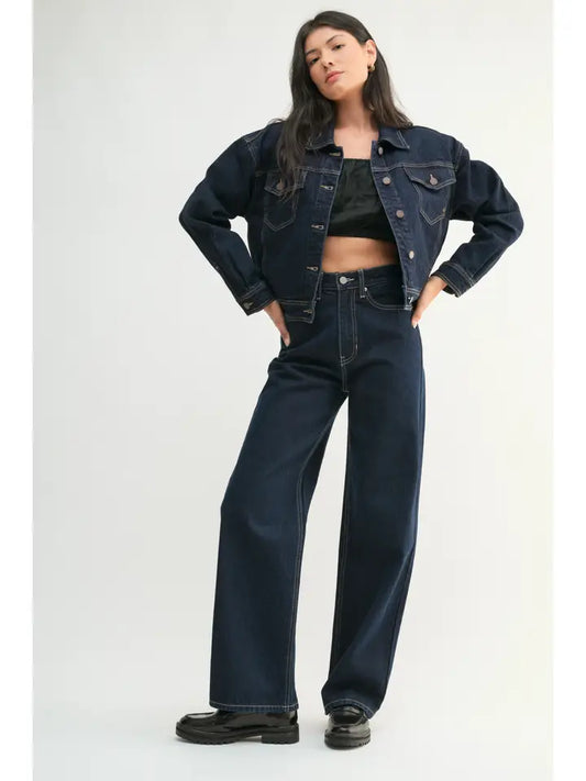 Stretchy Wide Leg Denim Jeans - Dark Denim