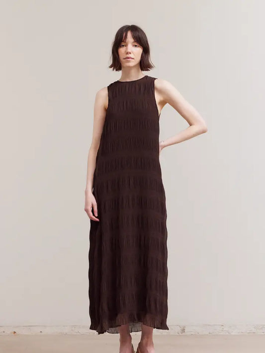 Grade + Gather - Pleated Chiffon Dress - Chocolate