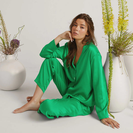 Lunya - Washable Silk Long Sleeve Pant Set - Glade Green