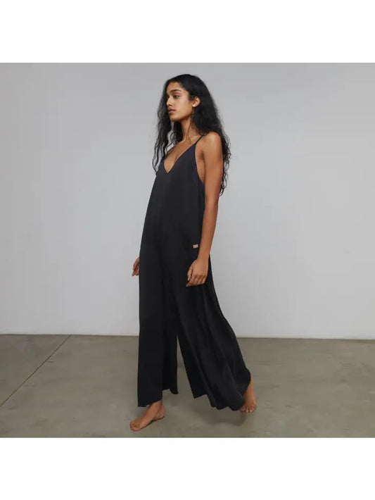 Lunya - Washable Silk Elastic Strap Jumpsuit - Immersed Black