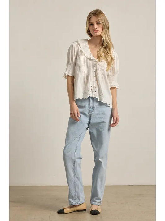 Embroidered Collar Button Blouse - Ivory