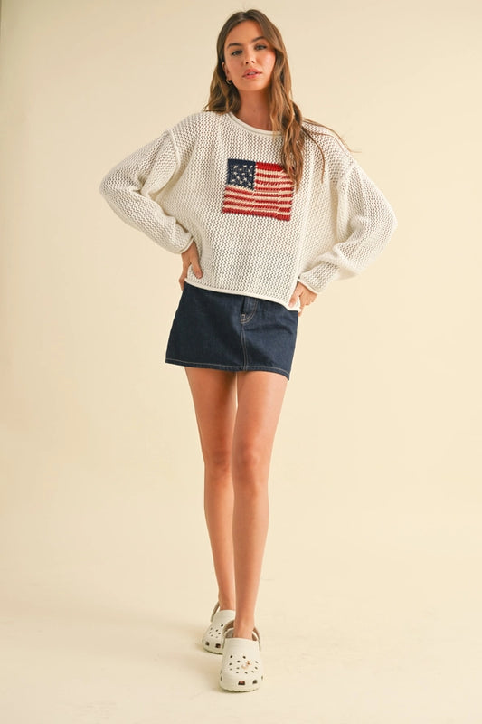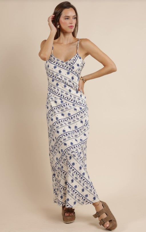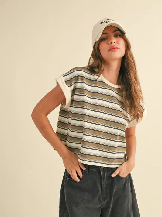 Feeling Lucky Embroidered Tee - Cream/Navy