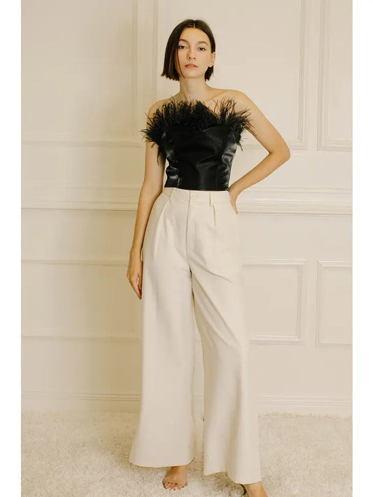 High Waist Trouser Pants - Nude