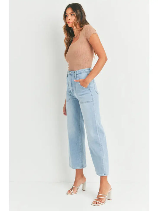 Cargo Pocket Wide Leg Denim Jeans - Light Denim