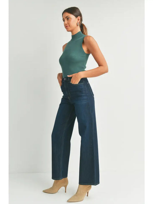 Retro Wide Straight Denim Jeans - Dark Demin