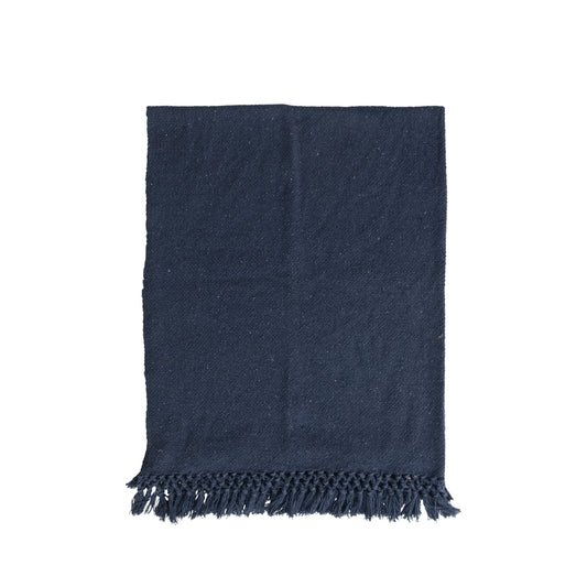 Woven Cotton Blend Throw Blanket - Navy