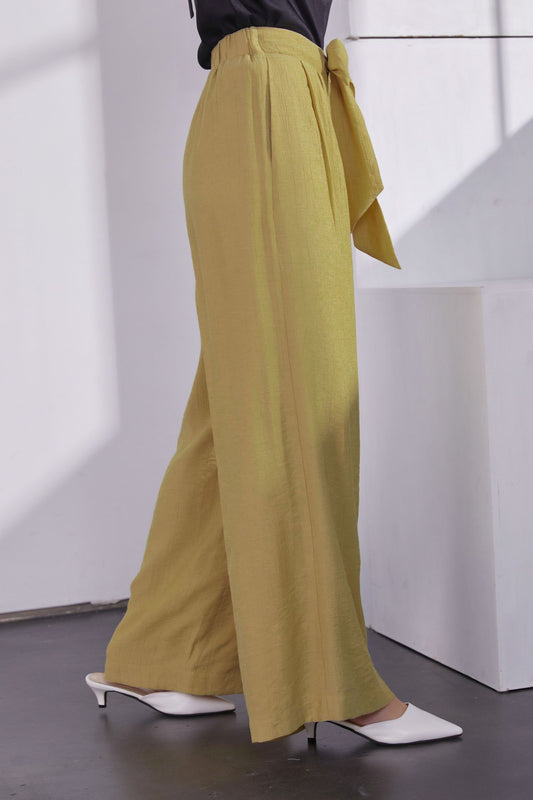 Crinkled Tie Waist Wide Leg Pant - Misty Moss