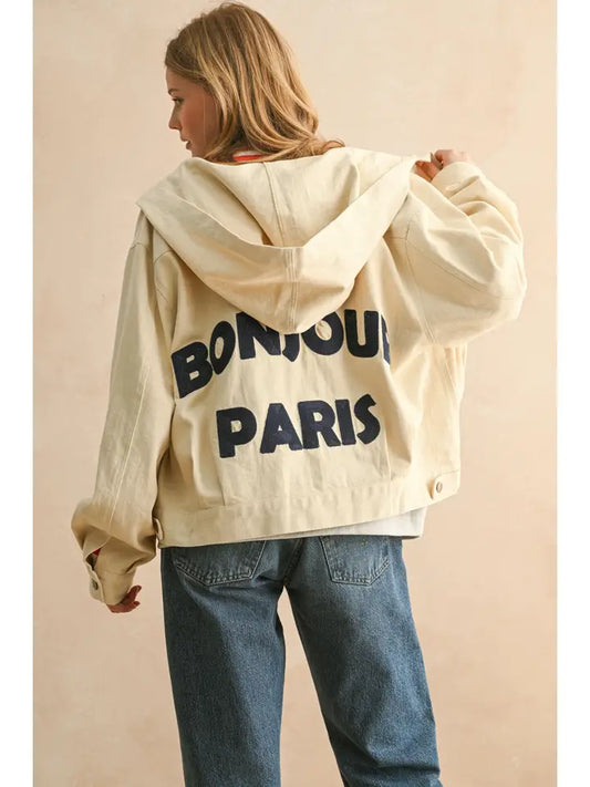 Letter Patch Back Detail Jacket - Ecru
