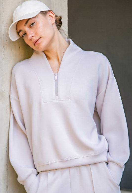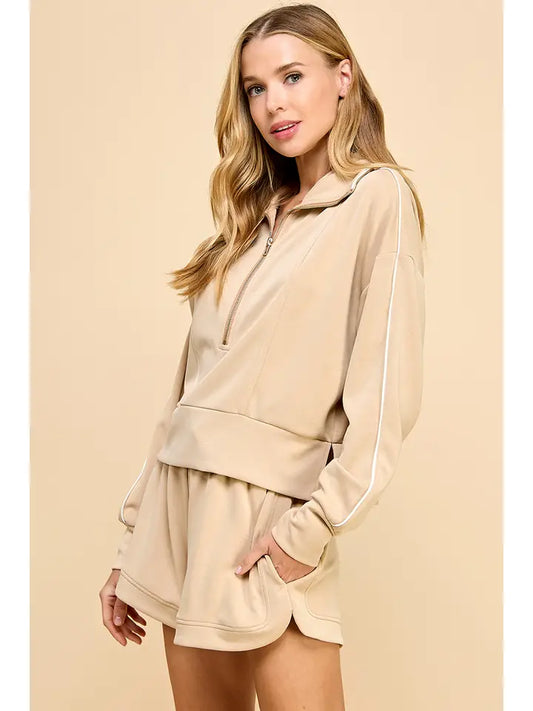 Luxe V Neck Half Zip - Mocha Cream