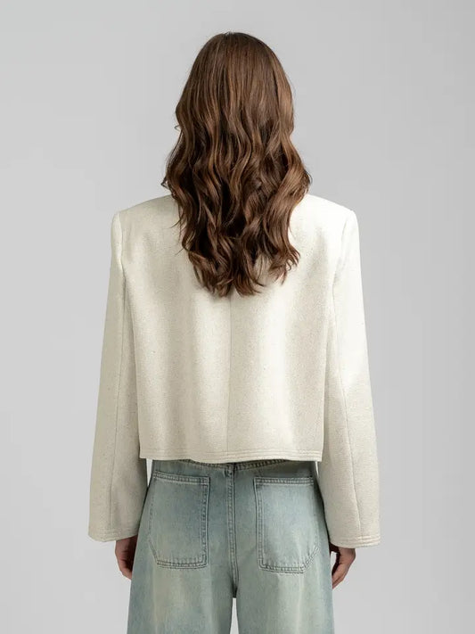 Crew Neck Tweed Jacket - Ivory