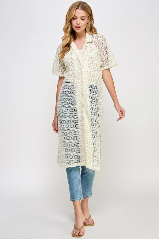 Rylee + Cru - Womens Longline Coat - Brown Houndstooth