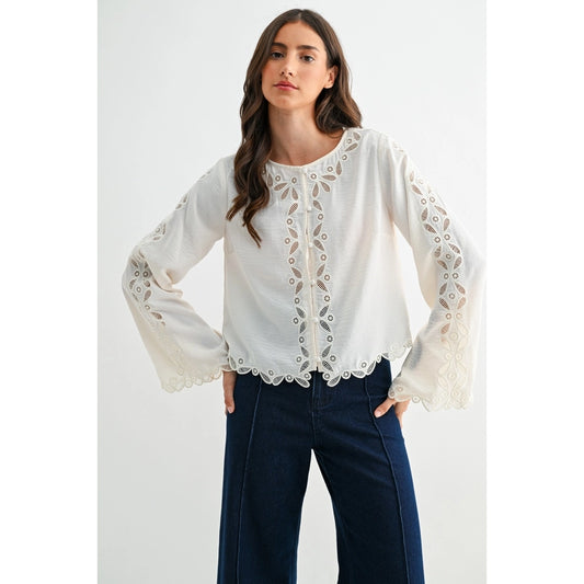 Ivory Scalloped Embroidered Lace Button Blouse - Ivory