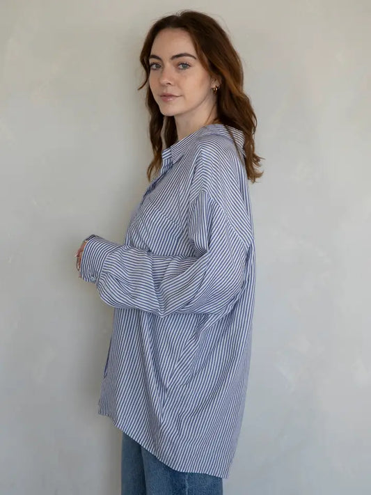 Pam Long Sleeve Cardigan - Navy & Cream Stripe